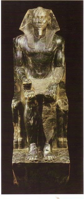 This extraordinary black statue of Pharaoh Khafre who built the 2nd pyramid at Giza is indisputably a great sculptural masterpiece. The majesty of its pose, the perfection and the subtle Masonic symbolism of its components parts, make it an ideal manifestation of the Old Kingdom’s theocratic monarchy. By legend, the Great Sphinx was made in Pharaoh Khafre's image, whose power was so complete his Empire stretched from Central Africa thru Southern Europe into India. Pharaoh Khafre was titled revered “Emperor of the World.”