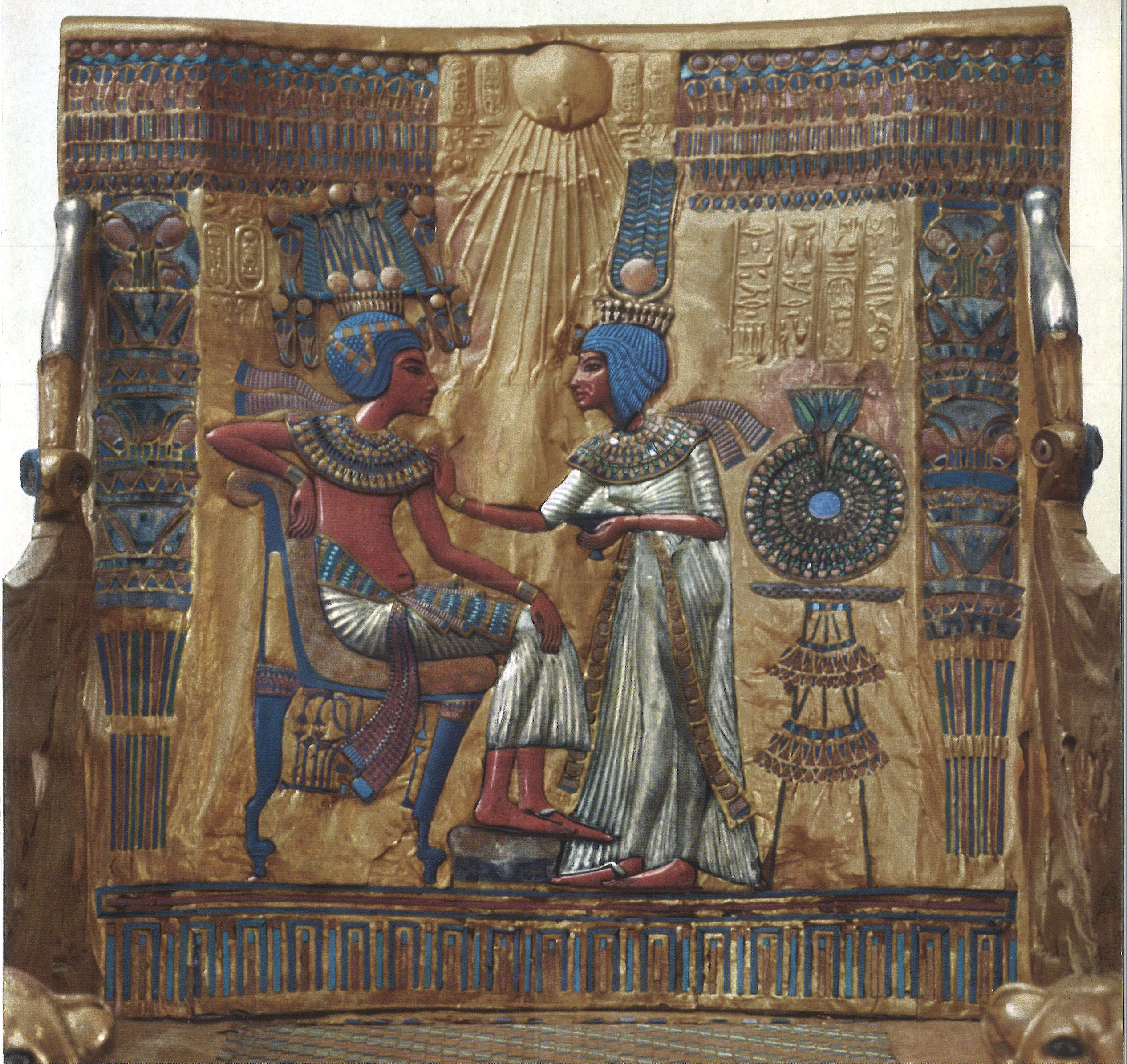 Relief on Golden Throne of King Tutankhaton and Queen Ankhesenaton. It is considered one of the world's greatest works of art. The love and trust protrayed by the relief is undeniable.