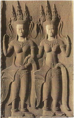 Khmer Wall relief called ‘’The Sisters’’. Ladies were noted for their cultural insights and healing abilities.The Preah Temple was an ancient renown College of Medicine with its fabled medical botanical gardens and the Neak Poan Hospital.
