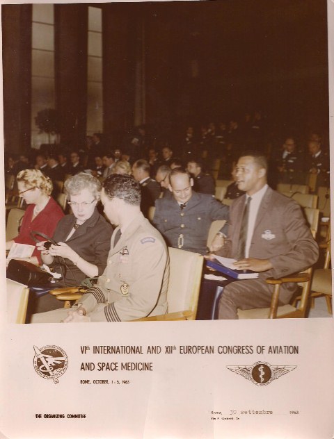 Deputy Director Aero Space Medicine Dr. Lewis Milburn representing the U.S. Air Force at the International European Congress of Aviation and Space Medicine in Rome. During his medical career,Dr.Lewis Milburn received the Medical Humanitarian Medal from Secretary of State Dean Rusk and President John F. Kennedy for his humanitarian work in Africa.